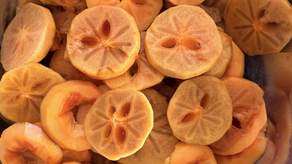 フレッシュで新鮮な柿を、どうにかして保存しようと自然のチカラでその質を変容させ、喜びや豊かさを保持していくように。